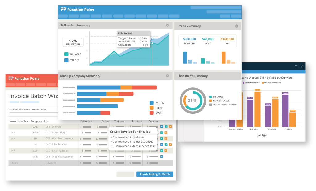 Function Point combines these features in one platform, allowing creative teams to handle all aspects of client projects, from time monitoring to budget management and profitability projections.