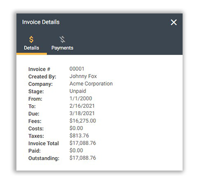 You can access a quick view of your invoice details on the View Invoices page by clicking on Menu > Details for the Invoice/Quote you wish to see.