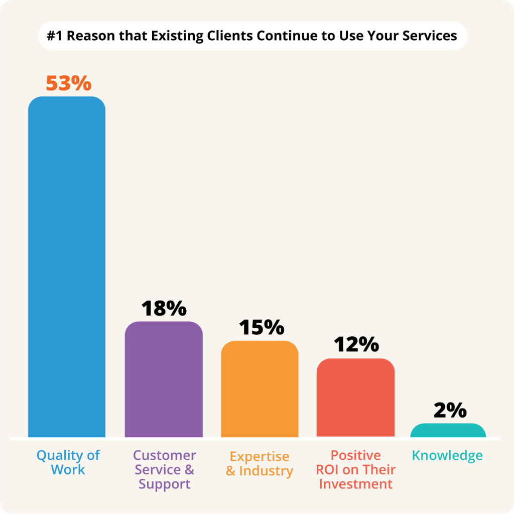 Per the 2025 Industry Report, here’s why clients stick around: WHAT IS THE #1 REASON THAT EXISTING CLIENTS CONTINUE TO USE YOUR SERVICES?