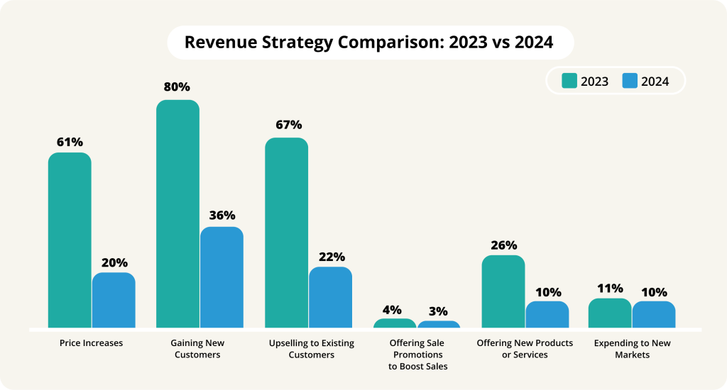 Here’s a comparison of revenue growth strategies in 2023 vs. 2024: