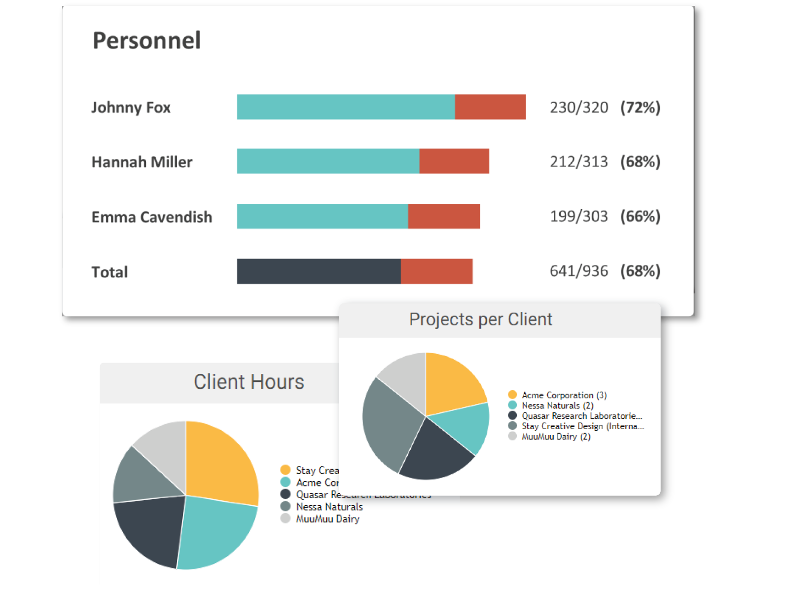 Whether it is client hours, staff utilization, project profitability, or team capacity, our agency reporting software has a report for you. Whether it’s client hours, personnel utilization, project profitability, or team capacity, our suite of agency reporting tools gets you the information that you need for informed, data-driven decision making.