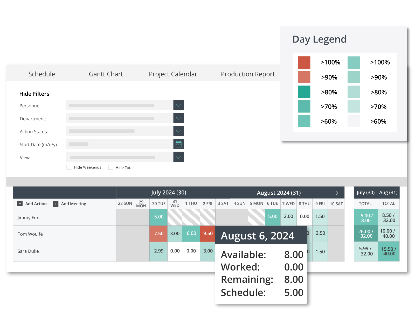 Instantly view and manage team capacity with our ad agency management software, allowing for easy time tracking and efficient workload distribution.