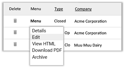 - Clicking on Menu > Edit