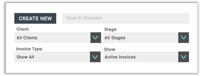 - Filter by Stage – by default any newly created invoice will have a stage of Unpaid