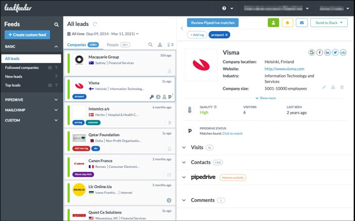 There is no doubt that the best digital marketing tool for gathering lead intelligence is Leadfeeder, a B2B visitor identification software that tracks and identifies companies that visit your website — even if they don’t leave their contact information. This information helps you better understand your site visitors so you can build more effective marketing strategies. It is a web app that increases your sales intelligence by integrating your sales and marketing data.