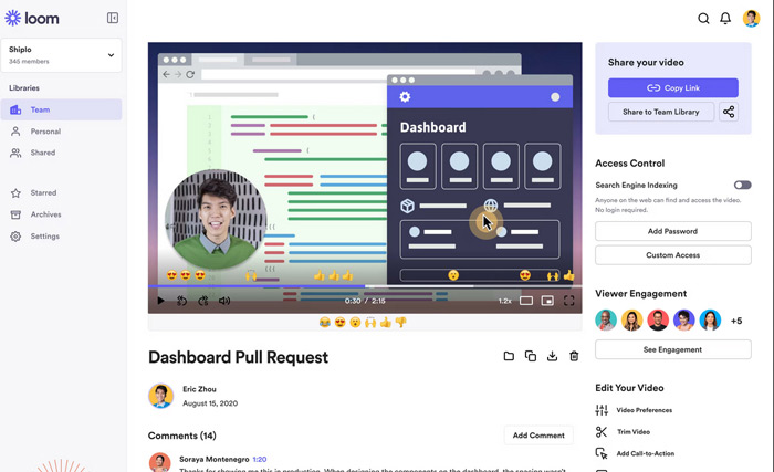 You can record both your screen and camera with one click and share that content immediately with a link.