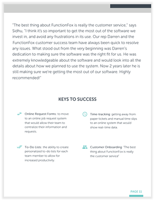 The best thing about FunctionFox is how it has transformed our previously chaotic process into an organized one, and made it quick and easy to retrieve data all while helping us track our time and ensure we are completing each request.