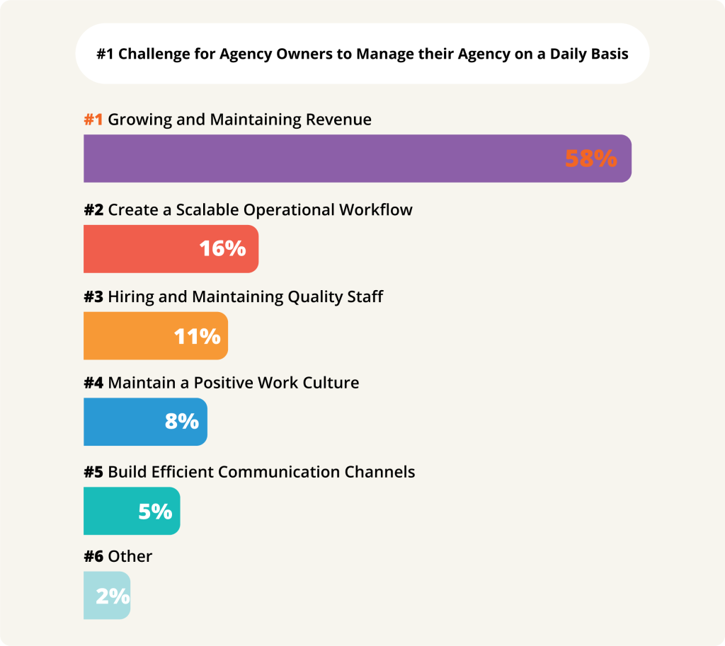 According to the FunctionFox 2025 Industry Report, 58% of agency owners say that growing and maintaining revenue is the #1 challenge they face on a daily basis. And for small agencies, that challenge is amplified by tight margins, lean teams, and the constant juggle between doing the work and bringing in the work.